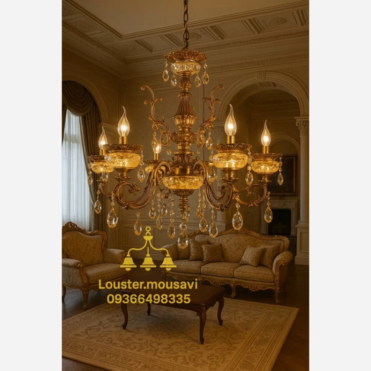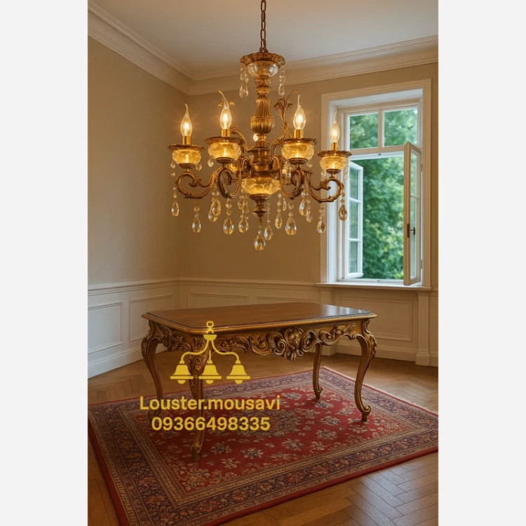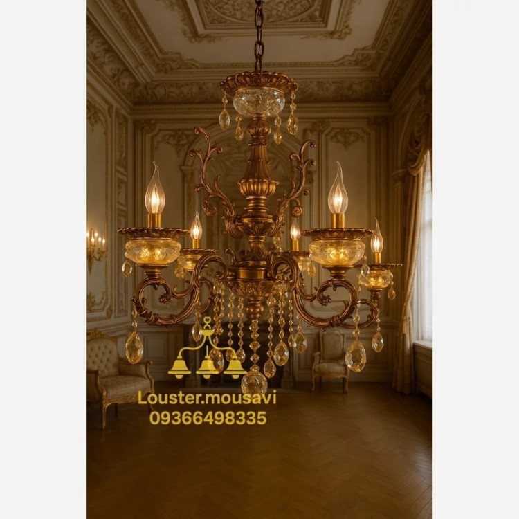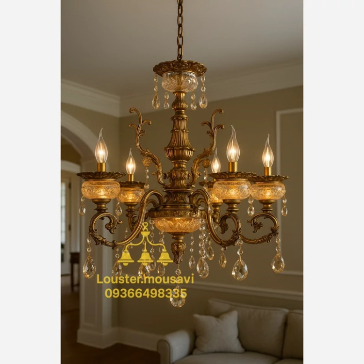 لوستر 6 شاخه کریستالی تمام وارداتی