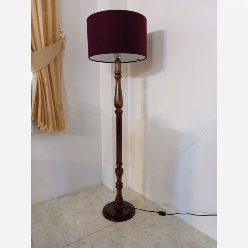 آباژور کنار سالنی چوبی پایه خراطی کامل با شید