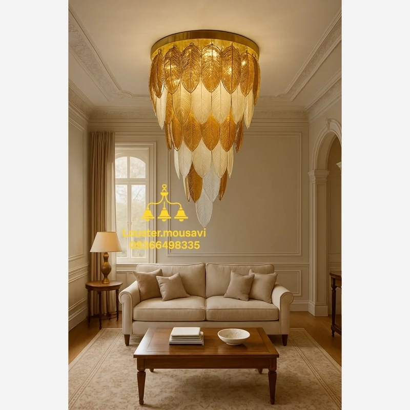 ✨ لوستر برگ طلایی – لوکس و پرنور