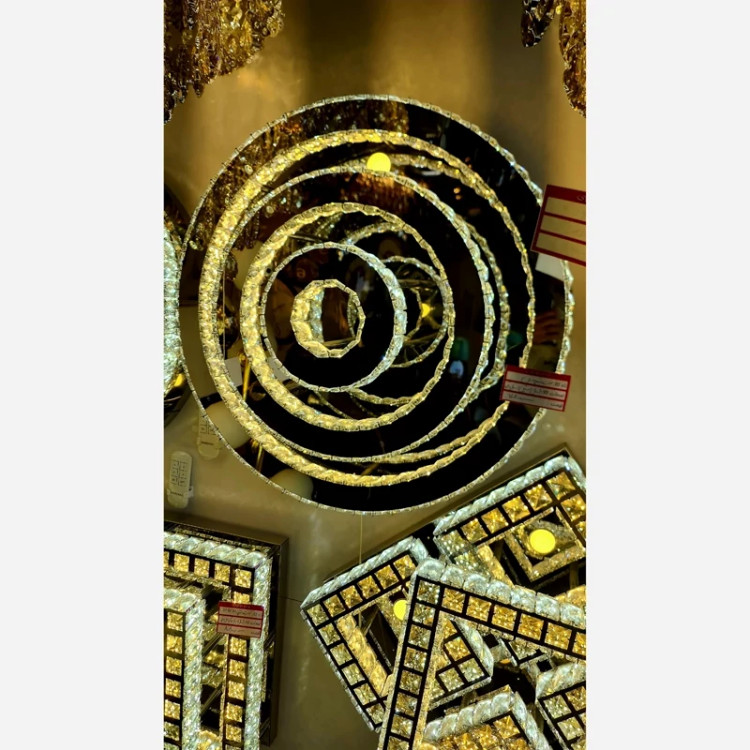 لوستر سقفی مدرن کریستالی گرد 60 سانت مدل دو طرف کریستال