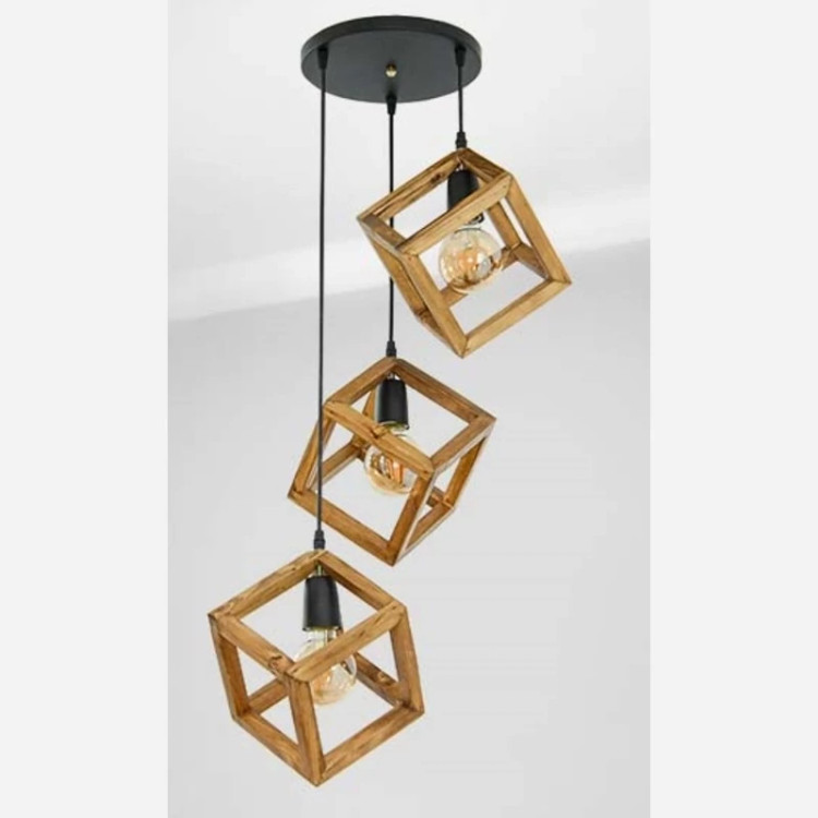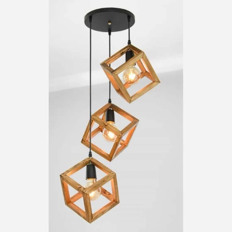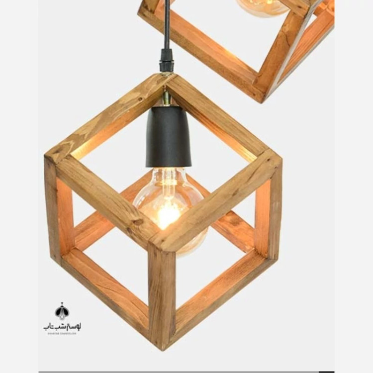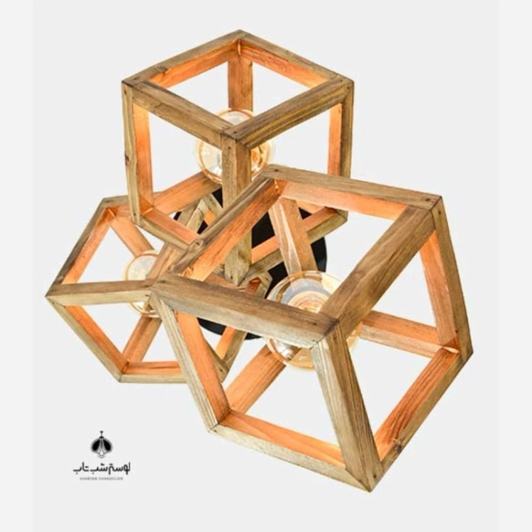 لوستر سه شعله مکعب چوبی مخصوص اتاق خواب و آشپزخانه
