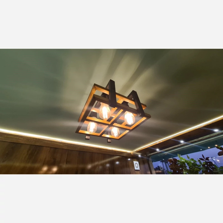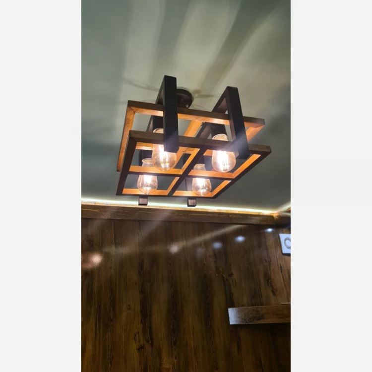 لوستر چوبی 4 شعله مخصوص سالن و آشپزخونه و اتاق